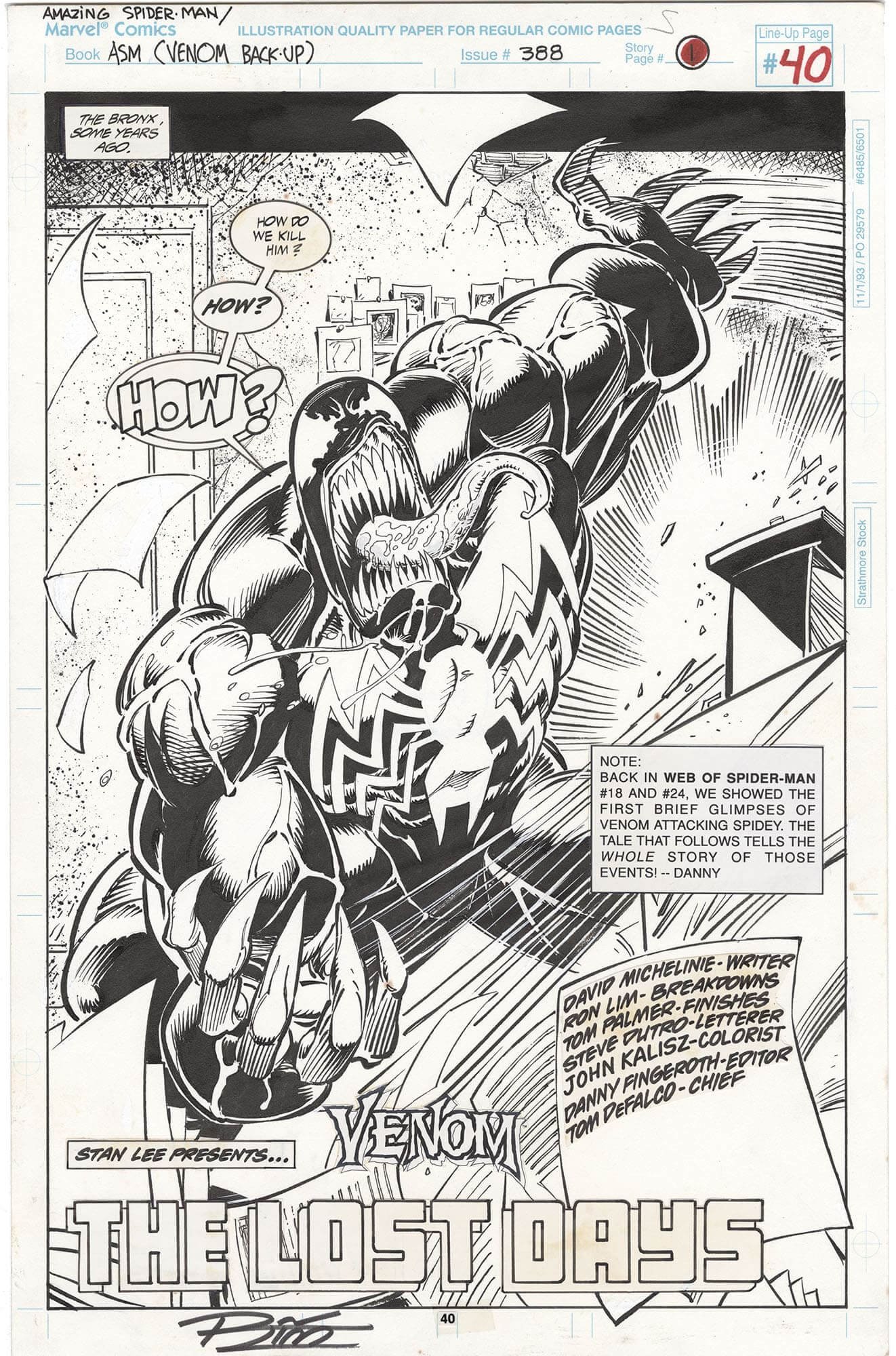 Yes, I know this is an outrageously good Venom image, but what takes it to the next level is that this story takes place right after Eddie Brock made his first appearance in Web of Spiderman 18 and just acquired the Venom symbiote - what a great throwback story.