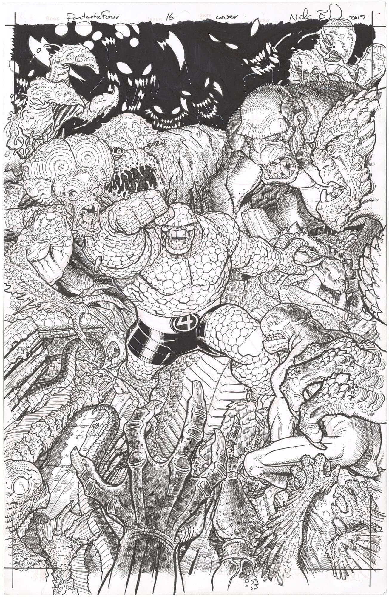 The first time I saw this cover I thought it was drawn by Art Adams - that's how good Nick Bradshaw has become as an artist. The Thing has never looked so good`facing off against these inhuman creatures.