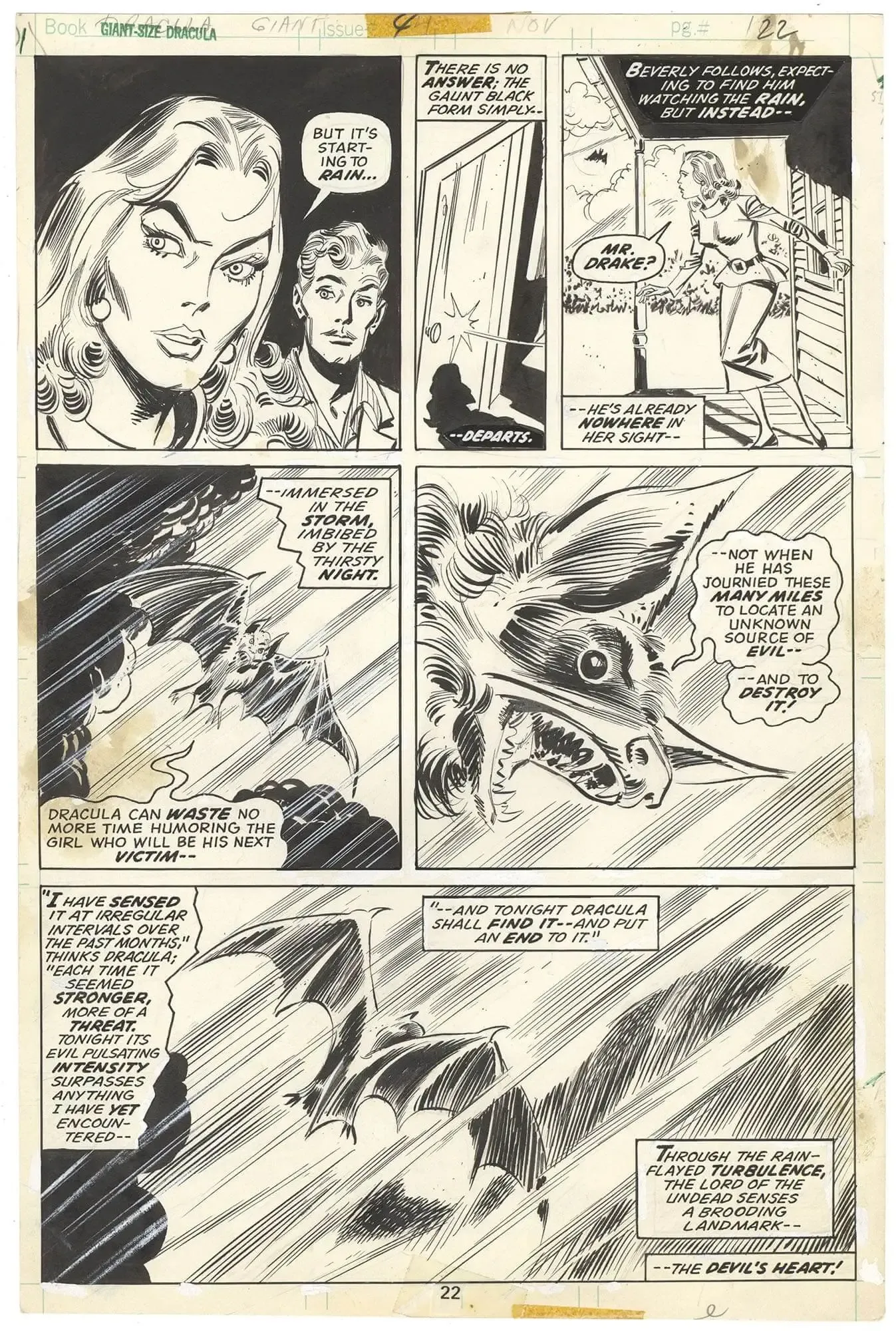 I’m a big fan of Dracula pages that feature the vampire in bat form. The rain effect makes it that much more dramatic.