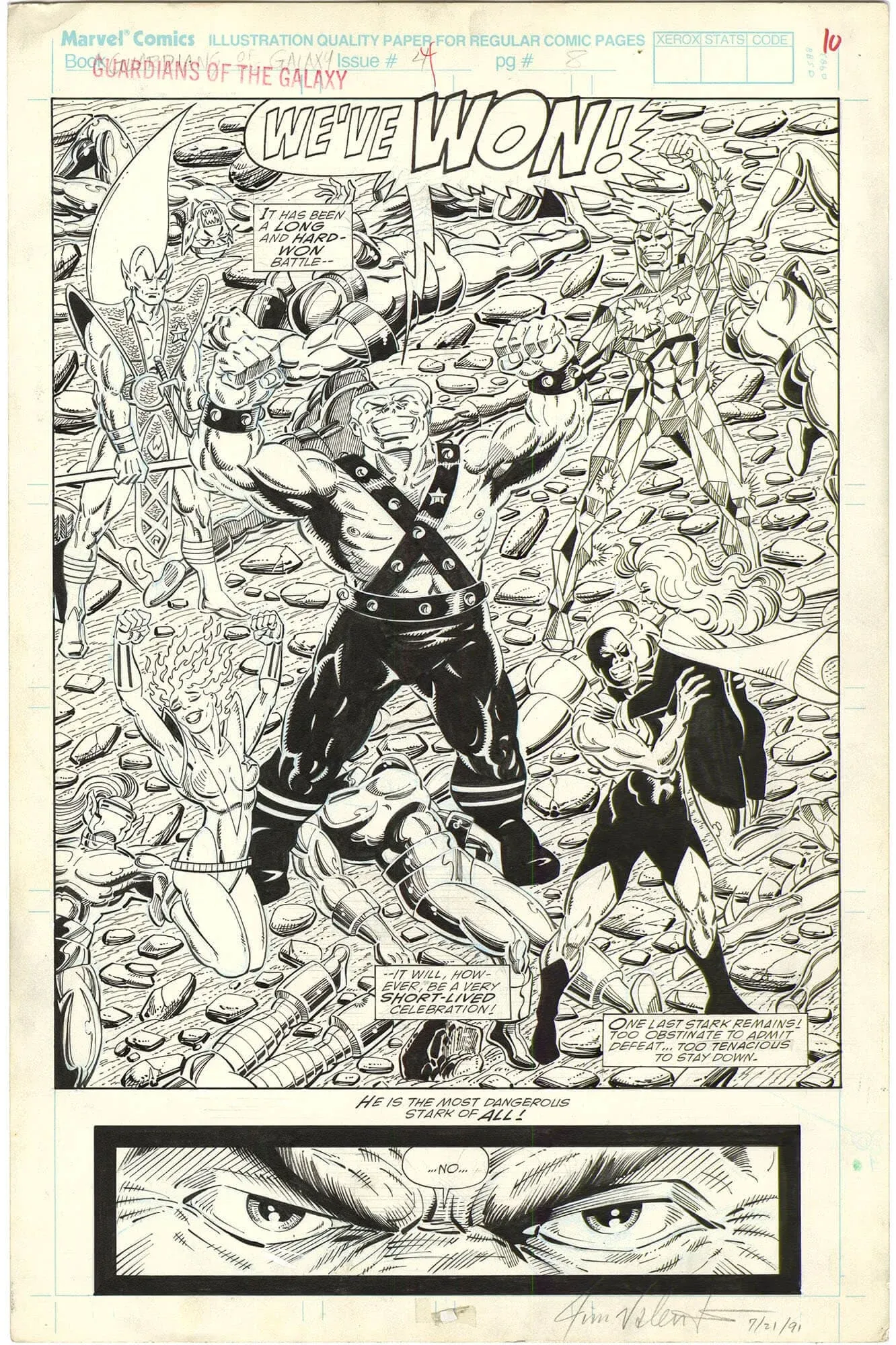 This splash is truly better than most covers in the run. Growing up I was a big Guardians fan, I loved the characters and what they represented. It still makes me smile looking at this piece. Jim Valentino clearly did his best work on this title.