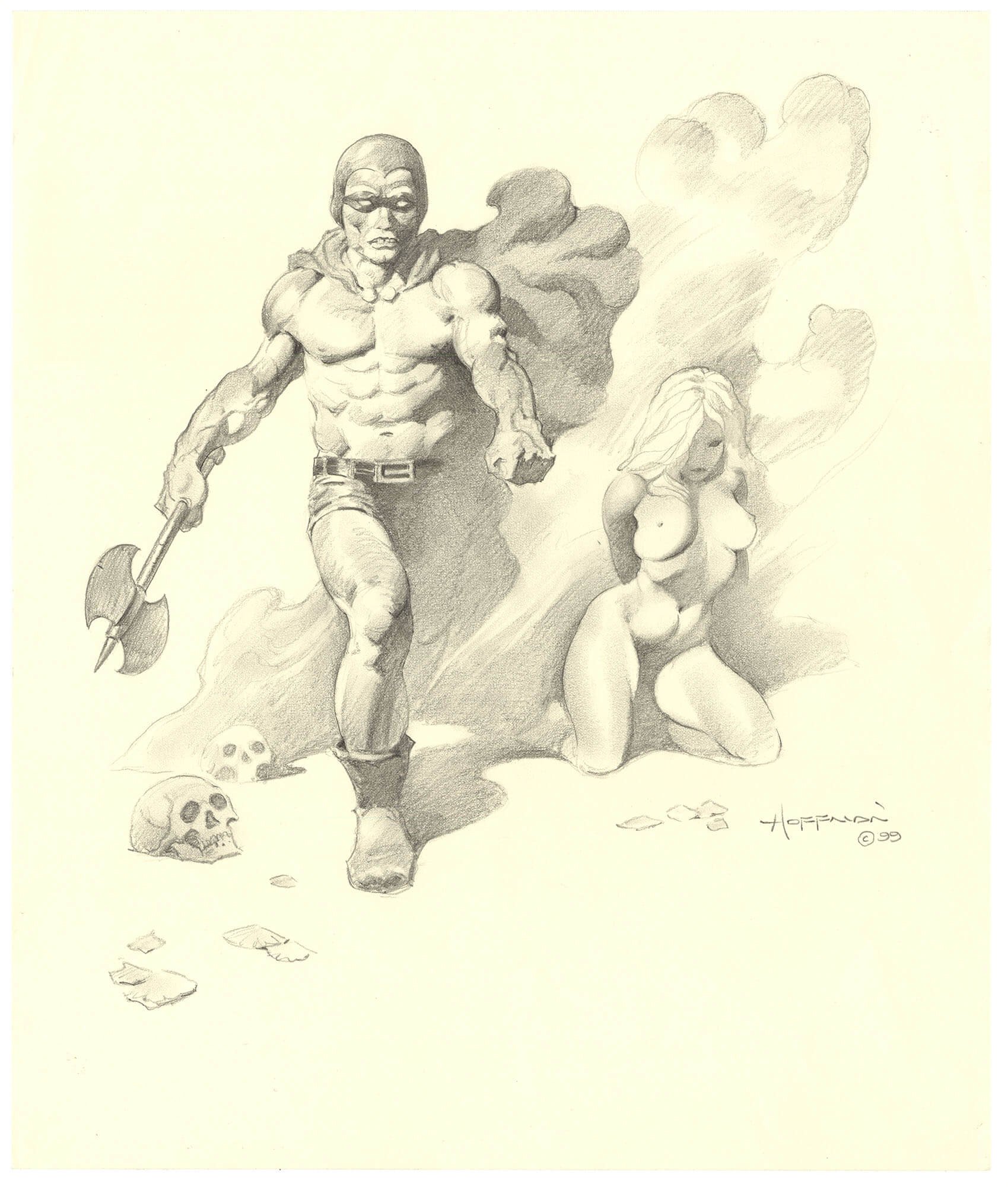 I know what you’re thinking, this Hoffman piece looks like Frazetta drew it. This is the best Hoffman piece that I’ve ever seen. Both the girl and the warrior are magnificently drawn.