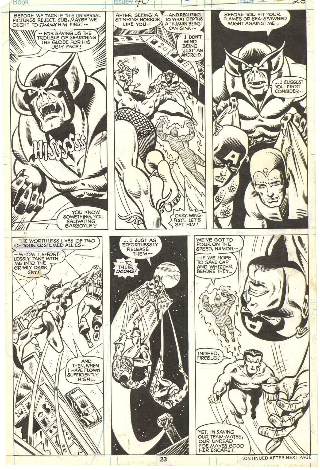 Who doesn’t love Baron Blood as a Marvel villain? This page features him battling the Invaders. It even has a cameo of the Whizzer.