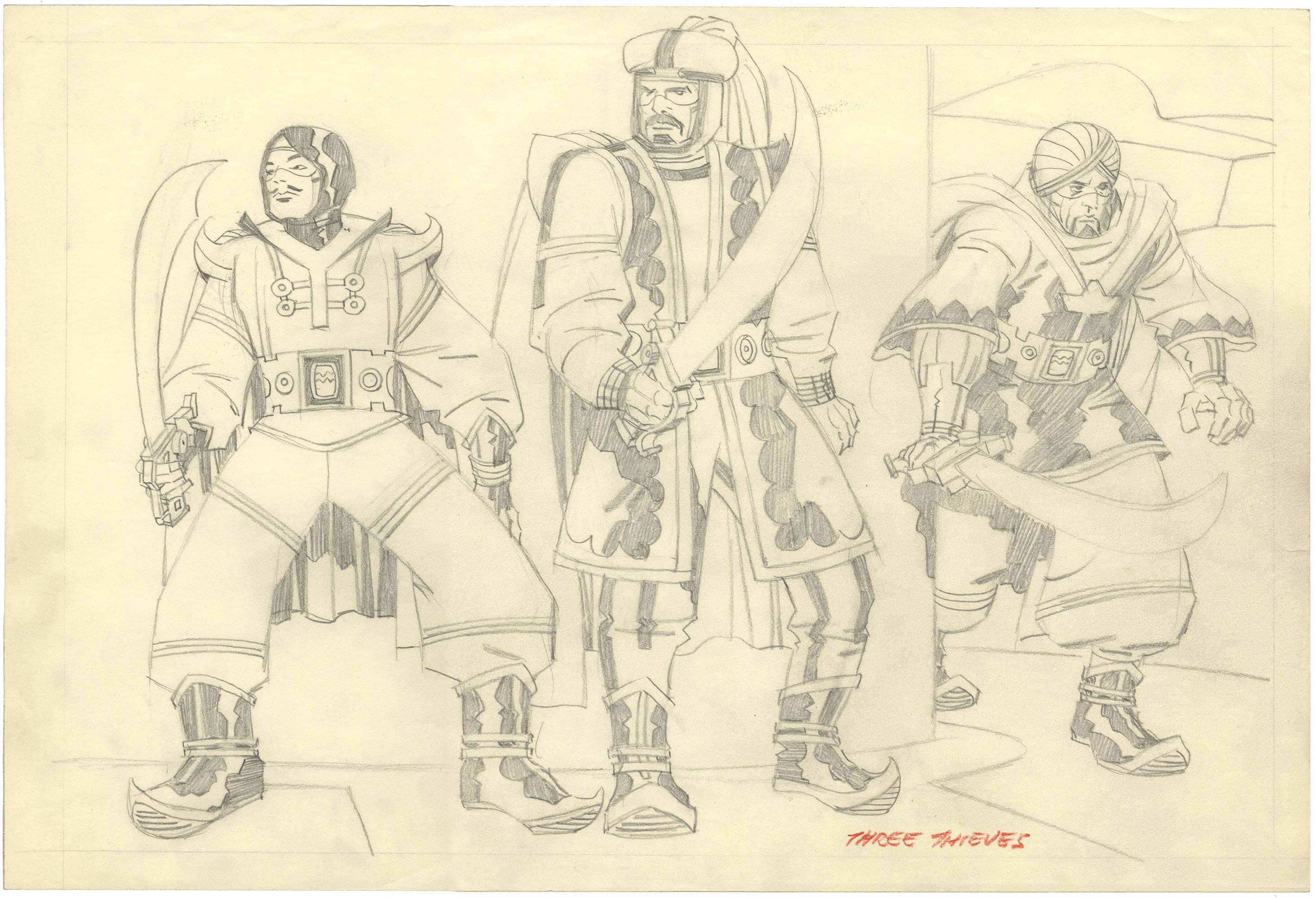 There’s nothing like seeing Jack Kirby’s pencil work up close. This comes from an animation project he was developing around 1980.