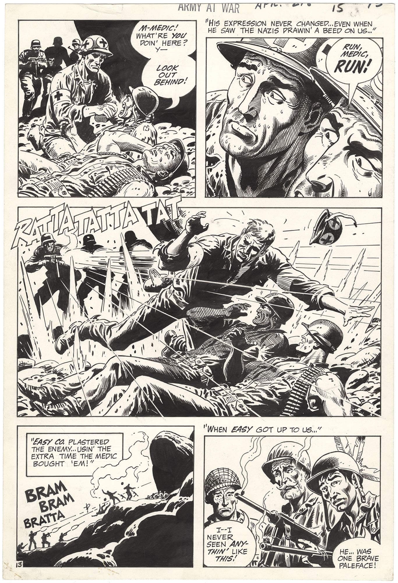This is one of my all time favorite Russ Heath War pages. Please read this page and you will understand why this page is so special. The medic’s job in war is unheralded but is so brave and essential. Here you have the climax of the story with the medic sacrificing himself for his fellow soldiers. It is truly moving and depicting great valor.