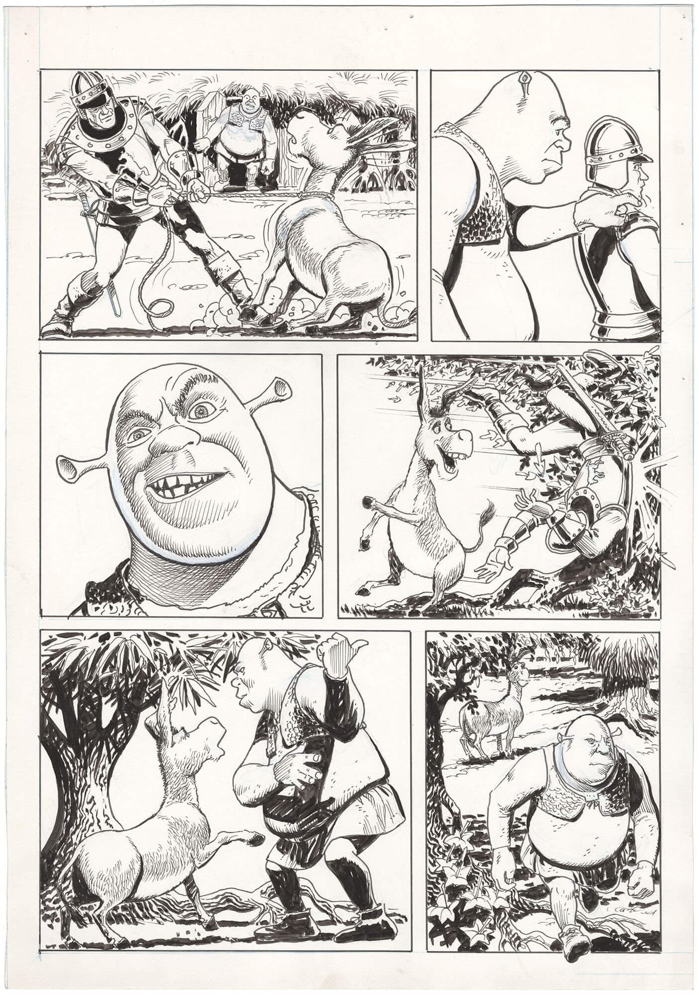 One of my kids’ favorite movies, and truly one of the great animated franchises ever made. I hadn’t even realized a Shrek comic existed — and this is as strong a page from the story as you could hope to find.