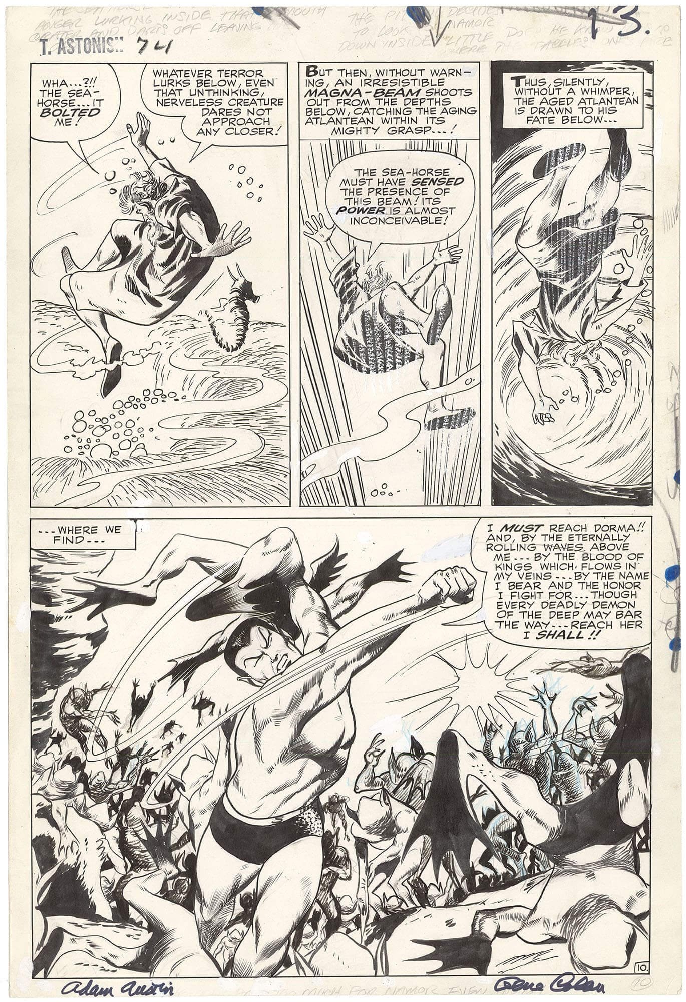This is clearly one of the best Gene Colan, Sub-mariner, pages that I’ve ever offered up for sale. That large panel of Subby battling is one of the best images of him that I’ve ever seen. If you were to own one Sub-Mariner page you couldn’t go wrong with this one.