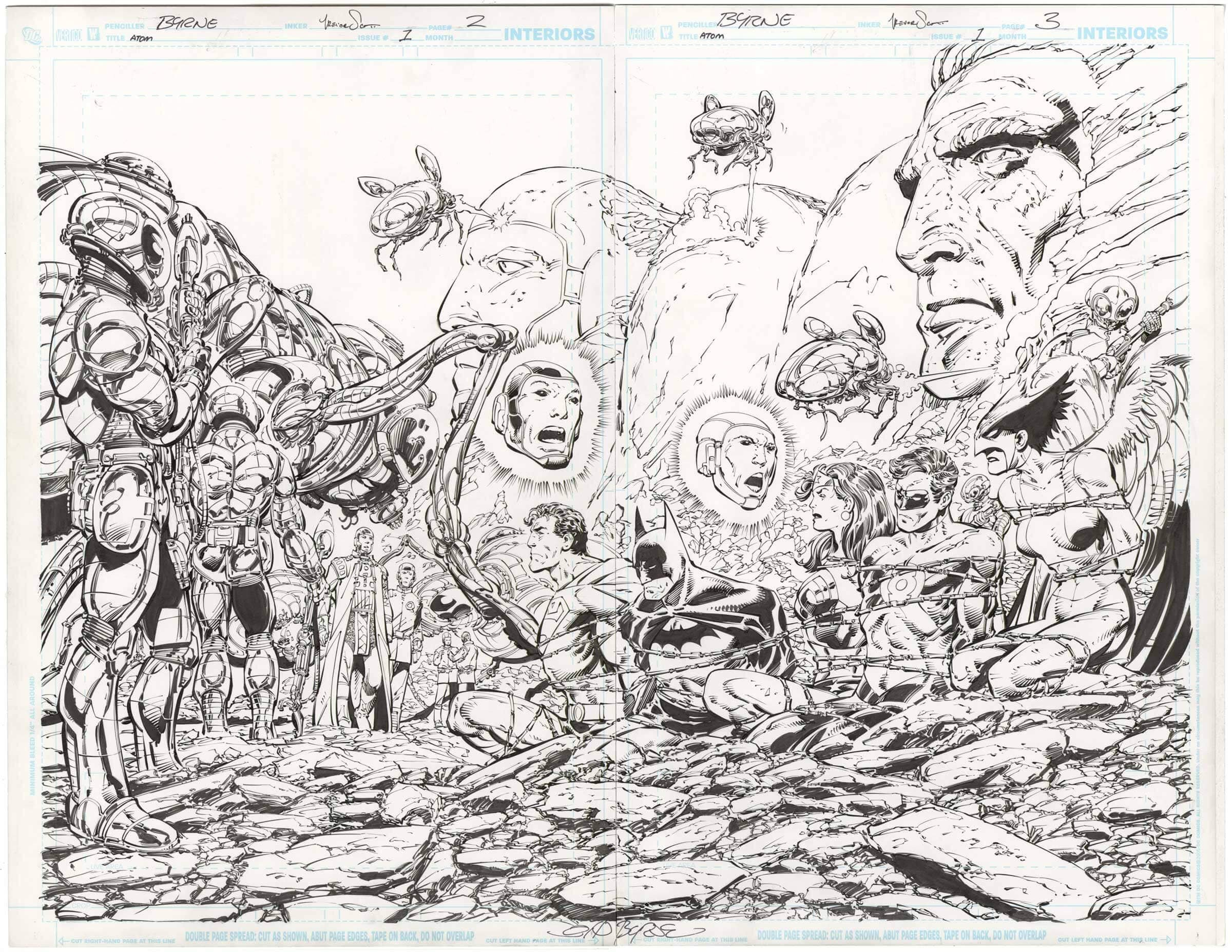 How often do you get an opportunity to own a Byrne double spread? Rarely is my guess, especially one that has this many great heroes on it.