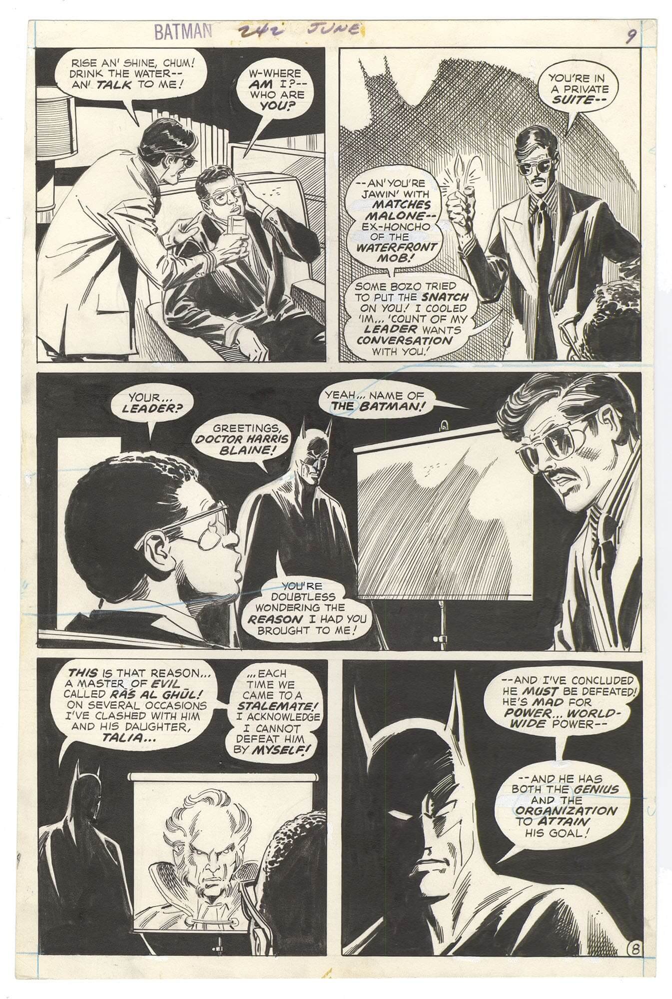 Good luck trying to find a Batman page that also has Ra’s Al Ghul. Irv does a wonderful job with his use of black shadowing to give Batman that menacing appearance.