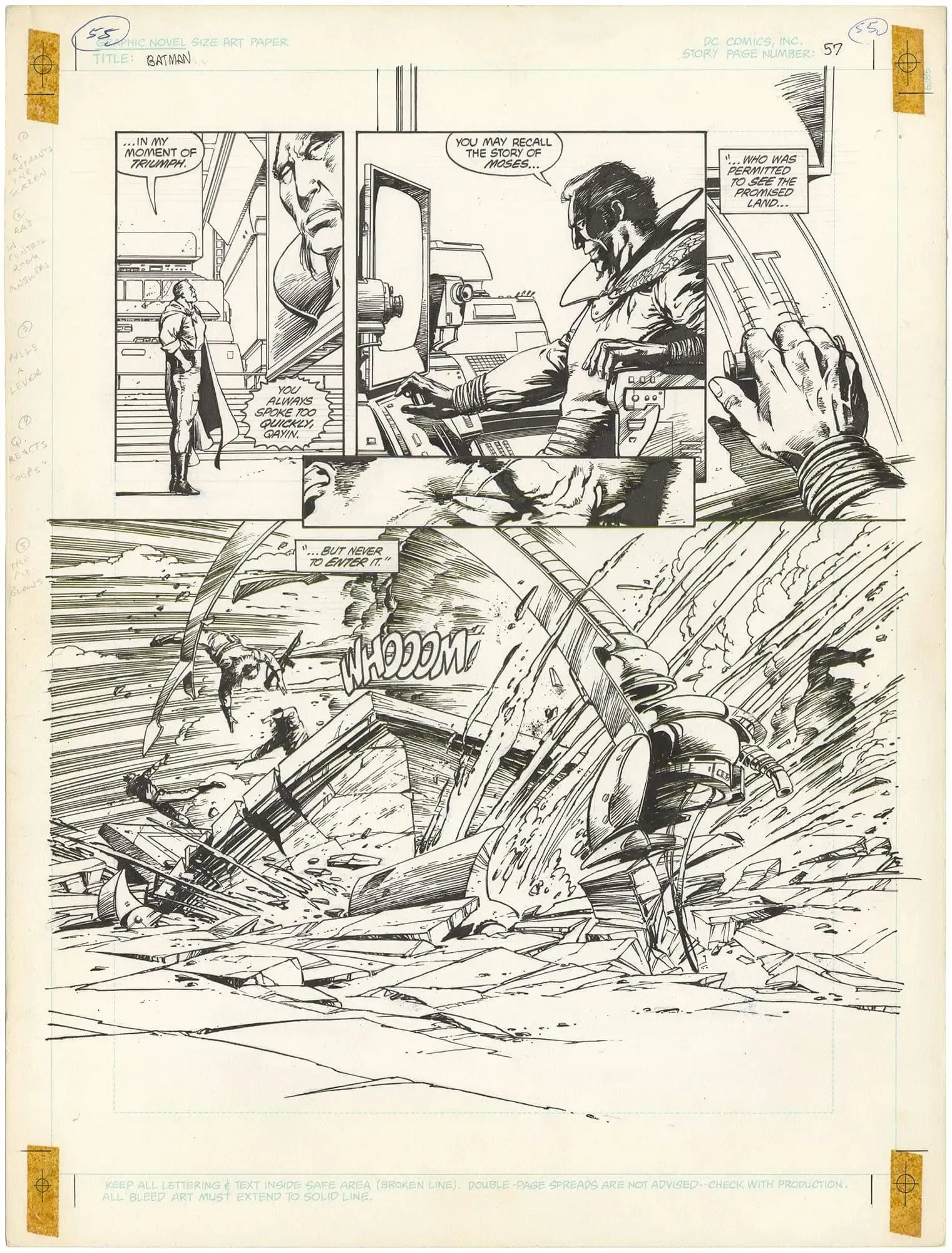 Son of the Demon was the first Batman graphic novel by DC. This was one of the trio of Batman stories that gained extraordinary fame at this time, the other two being the Dark Knight and the Killing Joke. Of course getting pages from those 2 titles will cost you in the 6 figures. Pages from the Son of the Demon seem exceedingly undervalued in comparison. This half splash is special in that it has an appearance by Ra’s Al Ghul, who is battling the main nemesis of the story.
