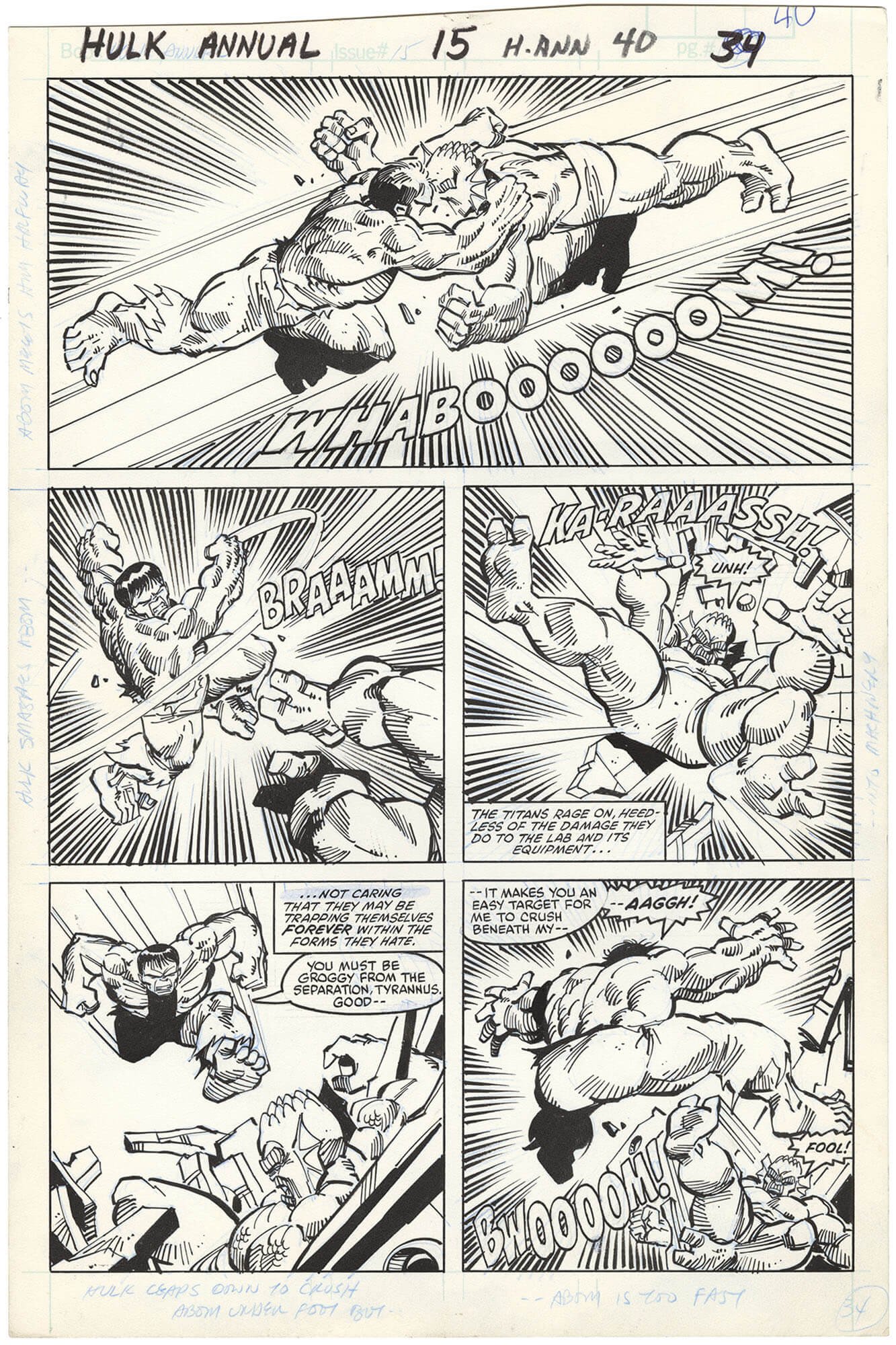 This is clearly the best page in the book which has the Hulk battling his arch enemy The Abomination. A page like this is exceptionally rare. Good luck being the first to order it.