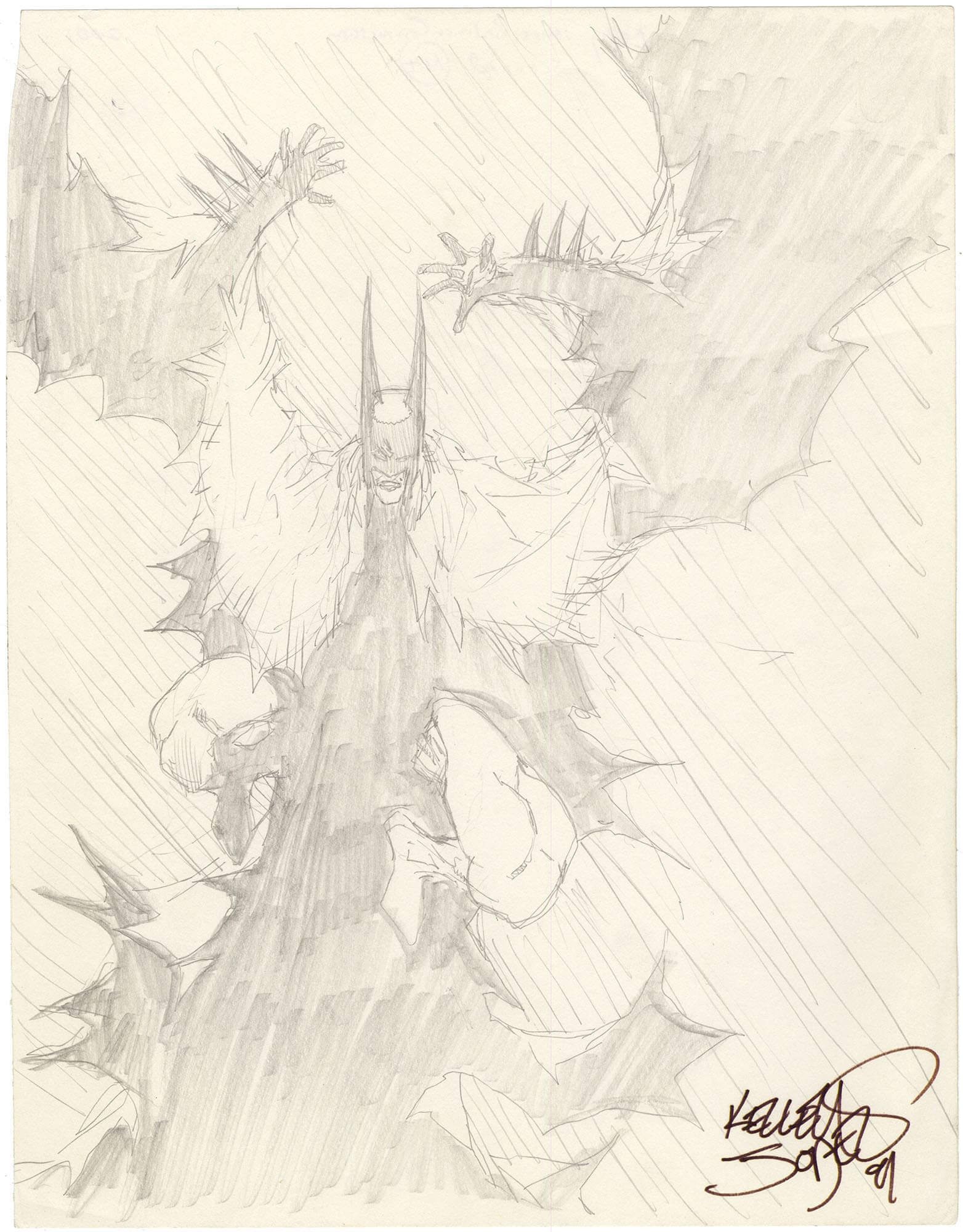 Here’s something you don’t see very often: a beautiful Kelley Jones pencil piece done 25 years ago.