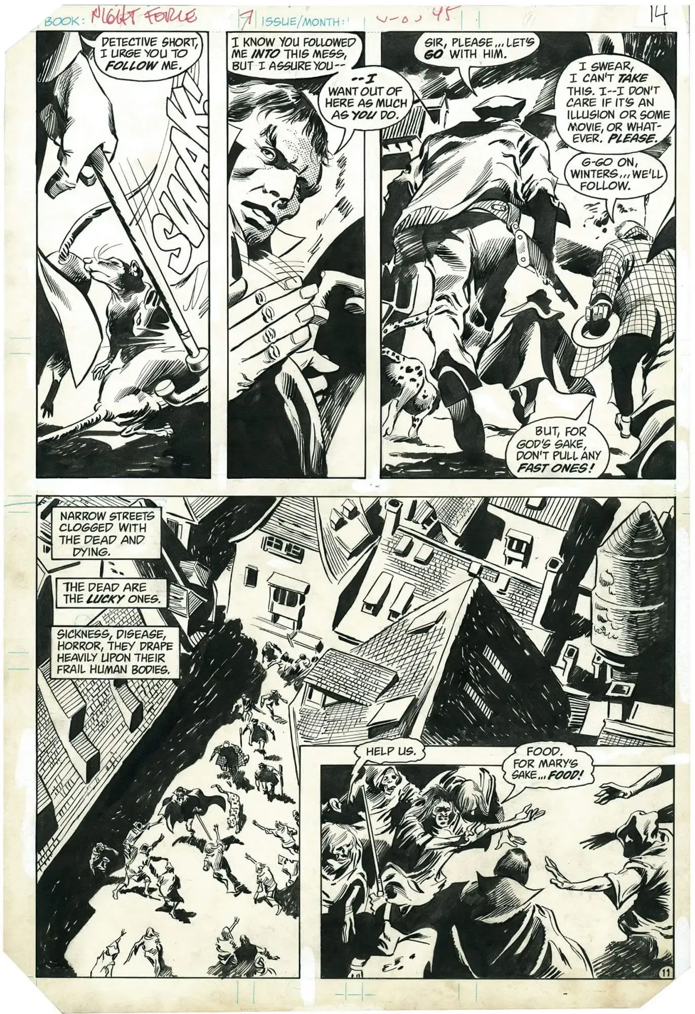 I thought I would offer a very good representative page from Night Force that is drawn by Gene Colan. It is very reminiscent of a Dracula page from Colan’s run.