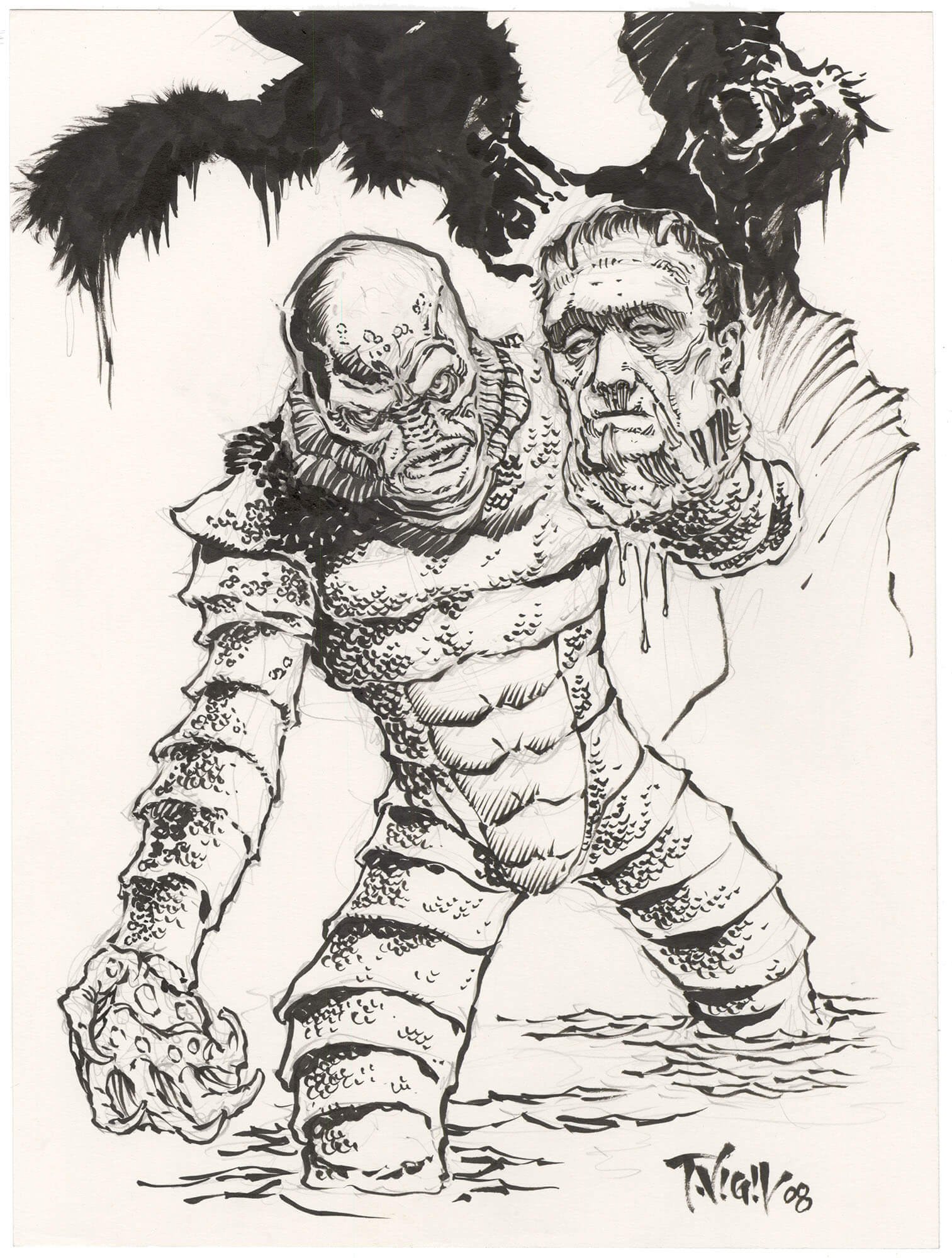 Tim Vigil, famous for Faust, loves the horror subject matter. I love that the creature has the head of Frankenstein in his grasp. (Circa 2008)
